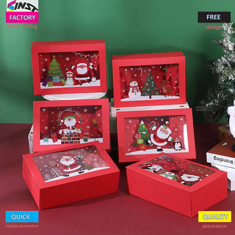 يتميز صندوق حلوى عيد الميلاد هذا بخلفية حمراء دافئة، وجسم صندوق مستطيل، ونافذة شفافة، مثل النافذة لإلقاء نظرة على حكاية الشتاء الخيالية. صندوق حلوى عيد الميلاد هذا مصنوع من مادة ورقية صلبة، والتي يمكنها عرض الحلوى بالداخل وتتمتع بدرجة معينة من الثبات. يمكن تكييفه مع العناصر اليومية مثل الشوكولاتة والحلويات والبسكويت والعلكة وما إلى ذلك؛ إنها ليست مجرد حاوية لطيفة للحلوى، ولكنها أيضًا زينة لسطح المكتب لعيد الميلاد. إن إعطائها للناس للاستخدام الشخصي يمكن أن يضفي بهجة على مزاج العطلة، مما يجعل كل حلاوة ملفوفة في إحساس بالاحتفال.