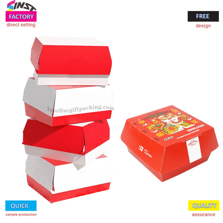 علبة الورق في Hamburger Takeaway Food Paping - مناسبة لمطاعم الوجبات السريعة ، وتقديم الطعام ، وأوامر تناول الطعام في الخارج.