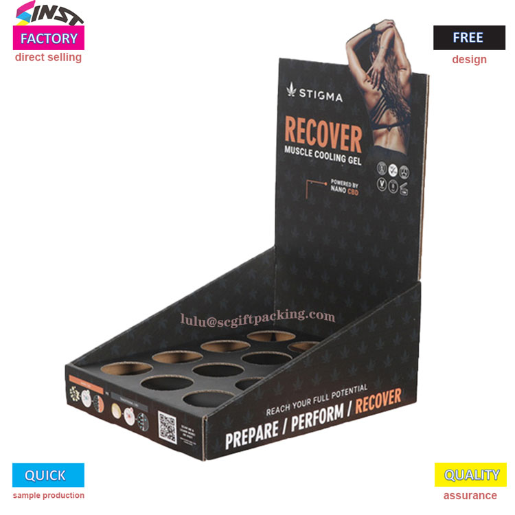 يتميز صندوق عرض المنتج الصحي هذا ذو ورق الفضاء الفارغ بجمالية بسيطة مع ختم الساخن في الخلفية السوداء وتأثير بصري قوي ، مما يبرز نقطة البيع الأساسية للاسترخاء في العضلات بعد التمرين. يتبنى رف العرض تصميم تخزين متعدد الشبكات ، والذي لا يثبت الشاشة فحسب ، بل يطلق أيضًا نسيج المنتجات ،