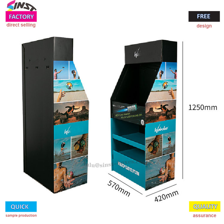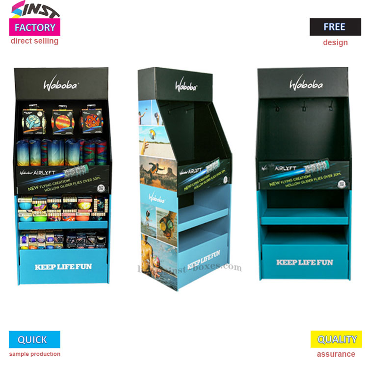 يلفت حامل عرض الألعاب هذا الأنظار بألوانه المتباينة الأسود والأزرق/الأسود والأخضر، مما يعزز العلامة التجارية بشكل متكرر ويبرز أيضًا نقطة البيع لمنتج "FLIES OVER 30M/50M". وتتزين المنطقة ذات اللون الأزرق والأخضر بمناظر الشاطئ وركوب الأمواج بالطائرة الورقية، مصحوبة بشعار "KEEP LIFE FUN"، الذي يستهدف متعة الأطفال بشكل مباشر. تستخدم الأرفف متعددة الطبقات لعرض الألعاب، وتستخدم الأدراج السفلية لتخزين الملحقات. إنها لا تعمل فقط بمثابة "لوحة إعلانية متنقلة" للعلامة التجارية، ولكنها تجذب الانتباه أيضًا من خلال التصميم القائم على المشهد. إنها عملية وممتعة من الناحية الجمالية، مما يجعلها أداة لافتة للنظر لعرض الألعاب.