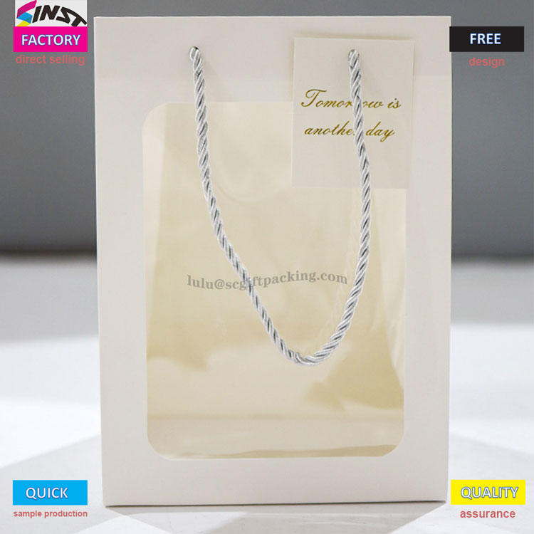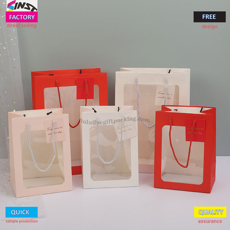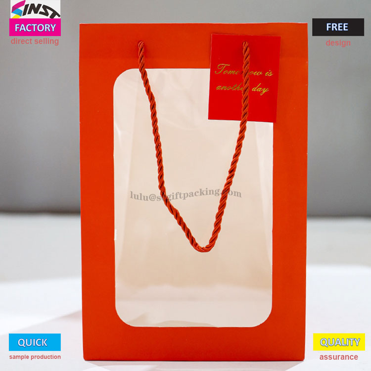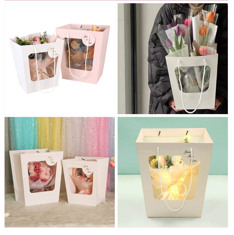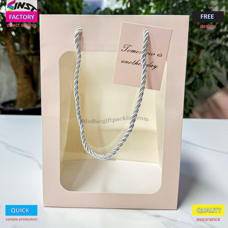 هذا المنتج عبارة عن حقيبة حمل باقة نافذة شفافة ، مصممة مع الورق المقوى عالي الجودة ونوافذ شفافة لعرض شكل الباقة بصريًا. المقبض عبارة عن حبل لرفع ثلاثة حبلا ، والذي يتمتع بقدرة قوية على الحمل وصديق للبيئة. دعم الشراء بالجملة لشعارات العلامة التجارية المخصصة وأنماط الختم الساخنة ، ومناسبة لمحلات الزهور الطازجة ، وعلامات الهدايا ، وأكياس لوازم الزفاف. كخيار عالي الجودة لأكياس التغليف الباقة وأكياس الهدايا التي تفتح النافذة ، فإنه يجمع بين جماليات وعملية.